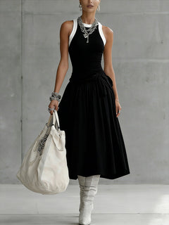La arquitectura se vuelve movimiento. El Slate Kinetic Plissé Set es una oda a la textura y la silueta dinámica. Este conjunto de dos piezas destaca por un top sin mangas de ajuste preciso, contrastado magistralmente con una falda midi de tablas profundas que crean un volumen escultural. Su diseño con cinturón de lazo define la cintura con suavidad, mientras que el acabado plisado aporta un juego de sombras y luces que cambia con cada paso. Una pieza de autor diseñada para quienes entienden que el estilo es una forma de expresión artística en constante evolución.